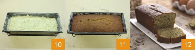 Versez la préparation à l'intérieur du moule 10 en nivelant bien la surface avec une spatule. Enfournez dans un four statique déjà chaud à 180° pendant 50 minutes (ou dans un four ventilé à 160° pendant 40 minutes) jusqu'à ce que la surface du cake soit dorée 11. Sortez le cake à la pistache du four, laissez-le tiédir, puis démoulez-le sur un plat de service, coupez-le en tranches 12 et dégustez!