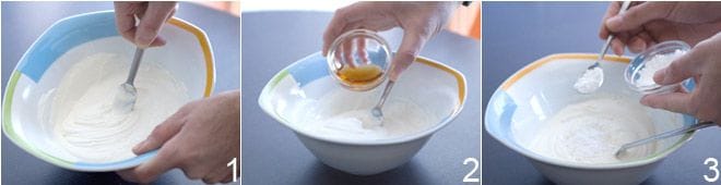 Dans un bol, mettez le mascarpone et la ricotta, puis mélangez bien les deux fromages avec une fourchette.1 Ajoutez le marsala 2 et le sucre 3 (la quantité de ces deux ingrédients peut être modifiée selon les goûts personnels).