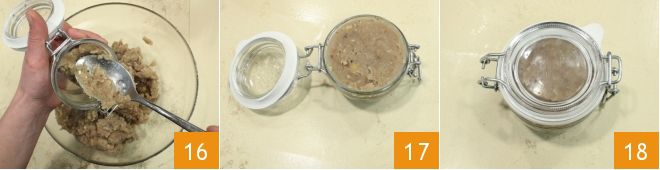 À ce stade, transvasez la crème de marrons dans les bocaux à l'aide d'une cuillère (16-17), votre crème de marrons est prête 18.