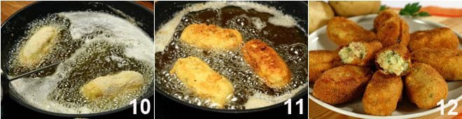 et enfin faites-les frire dans l'huile bouillante et laissez-les bien dorer en les retournant d'un côté et de l'autre. (10-11) Égouttez-les sur une feuille de papier absorbant et servez chaud 12.
