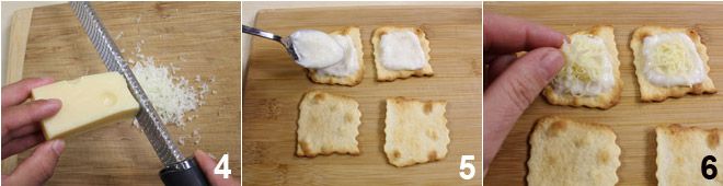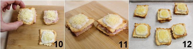 Garnissez les autres 12 feuilletés avec une autre cuillère à café de béchamel 7, un carré de jambon cuit 8 et une poignée de gruyère 9.