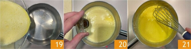 Remettez le mélange dans la casserole 19, ajoutez l'extrait de vanille 20 et mélangez sur feu doux jusqu'à obtenir une consistance dense et homogène 21.