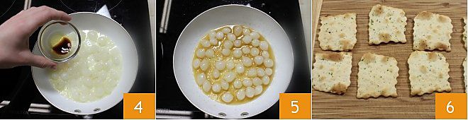 pendant que le sucre fond, assaisonnez les petits oignons en ajoutant la sauce soja 4. Laissez cuire le tout à feu modéré pendant environ 20 minutes, ou jusqu'à ce que les petits oignons soient bien caramélisés (toujours en remuant de temps en temps) 5. À ce stade, vous êtes prêt à composer votre finger food : prenez les feuilletés aux olives 6