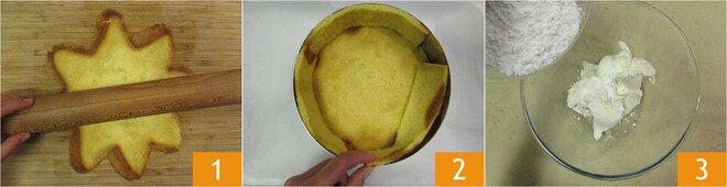 Pour préparer le gâteau de pandoro et Nutella®, étalez les tranches de pandoro avec un rouleau à pâtisserie à environ ½ cm 1. Découpez-en une avec un anneau de 18 cm, placez cet anneau sur un plateau sur lequel vous aurez disposé du papier sulfurisé. Placez à l'intérieur la tranche découpée qui servira de base. Coupez l'autre tranche étalée de pandoro en bandes de 5 cm de largeur, éliminez les extrémités irrégulières pour les égaliser et tapissez le bord de l'anneau 2. Pour farcir: mettez la gélatine à tremper dans de l'eau froide pendant au moins 10 minutes. Dans un bol, versez le mascarpone et le sucre glace 3.