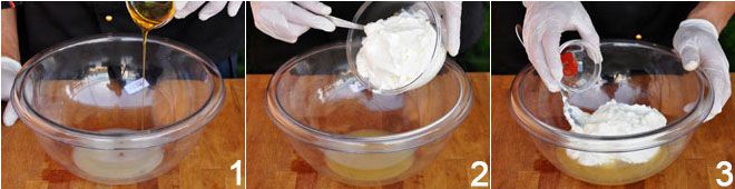PRÉPARATION DE LA VIANDE ET MARINAGE Tout d'abord, on procède à la préparation de la marinade. Les ingrédients de la marinade sont 5 parts de yaourt, 2 de jus de citron vert, 1 de miel de châtaignier pour un sachet de safran. On prend un récipient spacieux et non réactif aux acides (verre ou pyrex donc) et on verse le jus de citron vert juste tiède sur le feu dans lequel on fera fondre le miel 1. Une fois bien dissous, on ajoute le yaourt 2 et le safran 3 en prenant soin de bien mélanger le tout 4.