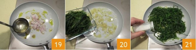 en ajoutant le bouillon de légumes peu à peu 19. Ajoutez la barbe de frate 20, assaisonnez de sel et de poivre 21,