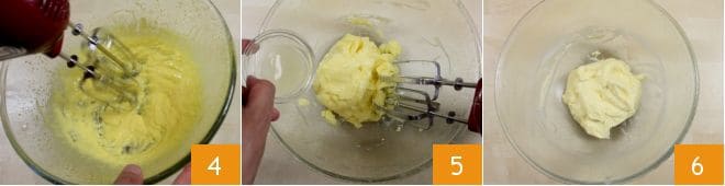 Continuez à monter toujours dans le même sens 4 : le mélange doit devenir de plus en plus lisse, épais et clair. Lorsqu'il aura atteint la consistance idéale, versez le jus de citron en continuant à fouetter 5 ; le mélange au contact du jus de citron prendra une coloration plus claire 6. Si vous voyez soudainement apparaître des grumeaux dans la mayonnaise, comme si elle était caillée, la mayonnaise a tourné. Mais vous pouvez y remédier de cette façon : mettez de côté la mayonnaise tournée et dans un autre récipient mettez un autre jaune ; fouettez à nouveau en ajoutant un filet d'huile et ensuite, toujours dans le récipient, ajoutez une cuillère à la fois et très lentement, la mayonnaise tournée, et tout devrait redevenir normal.