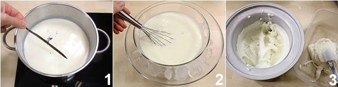 Pour préparer la glace pingouin, commencez par faire la glace à la crème : versez le lait dans une casserole, ajoutez le sucre, la crème et la gousse de vanille ouverte 1 puis mélangez et portez le mélange à pas plus de 85°. Une fois la température atteinte, placez immédiatement la casserole dans un récipient avec de l'eau et de la glace pour abaisser rapidement la température du mélange 2 et une fois froid, versez-le dans une sorbetière et laissez prendre pendant au moins 30 minutes, jusqu'à ce que le mélange soit dense et crémeux 3. Pour voir la fiche de la glace à la crème cliquez ici.