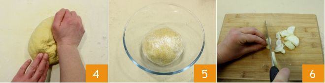 et pétrissez-la pendant quelques minutes sur un plan de travail légèrement fariné 4. Ensuite, couvrez-la de film plastique et laissez-la reposer au moins 30 minutes dans un endroit frais 5. Pendant ce temps, consacrez-vous à la garniture : épluchez et hachez finement un oignon 6;