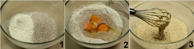 Dans un bol, versez la farine 00 1, ajoutez également celle de sarrasin, puis ajoutez les œufs, le sel et l'eau : commencez par ajouter 80 grammes et petit à petit le reste, car il pourrait être nécessaire d'en ajouter un peu moins que celle indiquée 2, mélangez bien avec un fouet pour obtenir une pâte lisse et homogène 3, qui doit être épaisse et se décoller de la cuillère en formant de grosses gouttes (ajustez-vous en conséquence avec l'eau à ajouter).