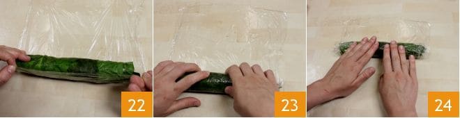 Maintenant, ramenez délicatement le rouleau au début du film plastique 22 et enroulez-le en le roulant au fur et à mesure avec ce dernier (23-24).