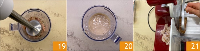 Mélangez 19 jusqu'à obtenir une sauce au thon lisse et homogène 20. Coupez finement le rôti 21.