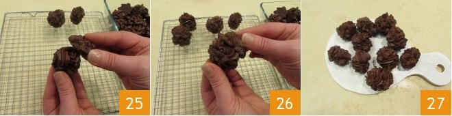 Placez un autre petit biscuit dessus 25 et pressez-le délicatement pour qu'il adhère complètement à la crème 26. Les baci di Alassio sont prêts 27, il ne vous reste plus qu'à les servir !