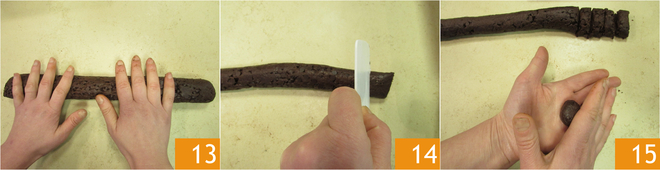 Roulez-le 13 et coupez des morceaux de 12-13 g chacun 14. Formez des boules rondes avec les mains 15.