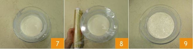 Obtenez une pâte lisse et sans grumeaux 7. Divisez dans deux bols, couvrez avec du film plastique 8 et laissez lever dans un endroit chaud de la cuisine pendant quelques heures ou jusqu'à ce que le volume double 9 en attendant occupez-vous du chou-fleur et de la morue.