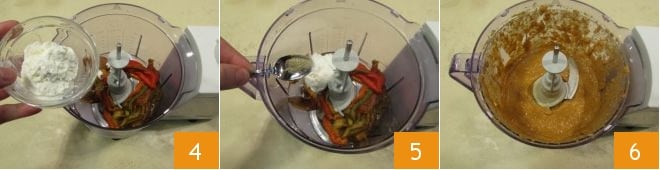 Ajoutez ensuite la ricotta 4 et l'huile d'olive extra vierge. Assaisonnez de sel et de poivre 5. Ensuite, activez les lames du mixeur et mixez tous les ingrédients jusqu'à obtenir une crème lisse et homogène 6.