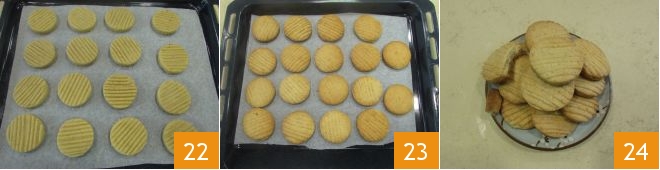 Faites cuire les biscuits 22 dans un four statique préchauffé à 185° pendant 25-30 minutes sur la grille centrale du four. Lorsque vos biscuits au gingembre seront légèrement dorés, sortez-les du four 23, laissez-les tiédir avant de les servir 24.