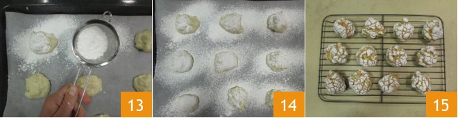 Parsemez généreusement la surface de sucre glace 13 14 et faites cuire dans un four statique à 200° pendant 20 minutes. Sortez vos biscuits aux pommes sans beurre du four et laissez-les refroidir sur une grille avant de les déguster 15.