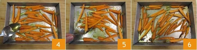 et du miel 4. Mélangez le tout pour enrober 5 et faites cuire dans un four ventilé préchauffé à 240° pendant environ 10 minutes sur la grille la plus basse. Ensuite, sortez-les du four 6 et gardez-les au chaud.