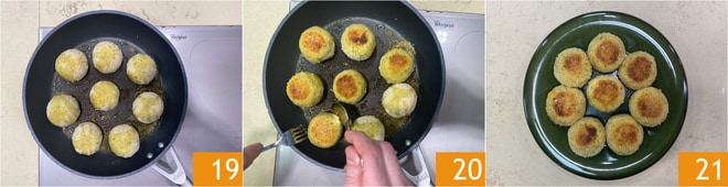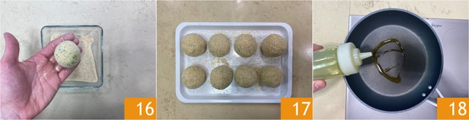 Passez ensuite chaque boulette dans la chapelure 16 17. Chauffez un filet d'huile dans une poêle 18.