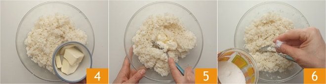 Transférez-le dans un bol, ajoutez le beurre 4 et mélangez pour le faire fondre 5. Rectifiez l'assaisonnement avec du sel 6.