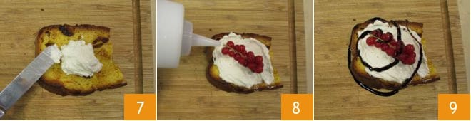 Garnir avec les groseilles et le glaçage au vinaigre balsamique 78. Les bruschettes de panettone au gorgonzola et groseilles sont prêtes à être dégustées 9.