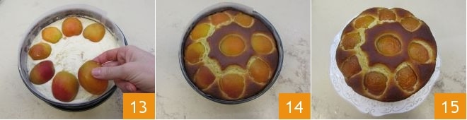 Reprenez les abricots mis de côté, coupez-les en deux, retirez le noyau et déposez-les délicatement sur la surface du gâteau avec la partie creuse tournée vers le bas 13. Enfournez dans un four statique préchauffé à 180°C pendant environ 60 minutes (si vous utilisez un four ventilé, cuisez à 160°C pendant environ 40 minutes) 14. Pour vous assurer que le gâteau est bien cuit, essayez de le piquer au centre avec une brochette : si elle en ressort sèche, votre cake aux abricots est cuit. Une fois sorti du four, laissez le gâteau tiédir avant de le démouler, puis placez-le sur une grille pour le refroidir complètement, puis sur une assiette de service 15. Si vous le souhaitez, vous pouvez saupoudrer votre cake aux abricots de sucre glace et le servir.
