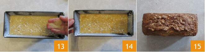 et les 20 g de sucre de canne pour la surface 13. Le cake à l'huile et citron est prêt à cuire sur la grille du milieu dans un four statique préchauffé à 180°, pendant environ 55-60 minutes. Faites toujours le test du cure-dent avant de le sortir du four et si après 30-40 minutes la surface devient trop dorée, couvrez avec du papier sulfurisé ou de l'aluminium. Une fois cuit, laissez-le refroidir avant de le démouler 15.