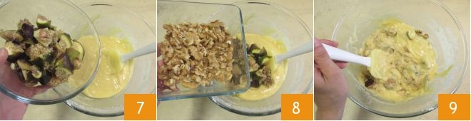 Ajoutez les figues 7 et les noix 8 et mélangez encore pour tout amalgamer 9.