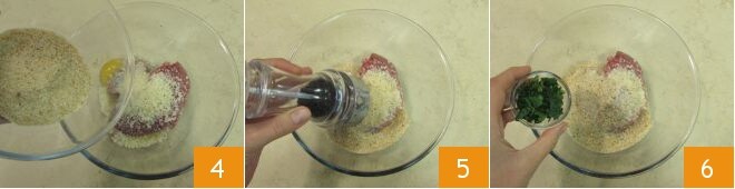 et la chapelure 4, salez, poivrez 5 et enfin assaisonnez avec le persil haché 6.