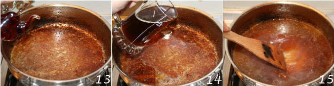 Portez à ébullition et grattez bien la poêle 15 afin d'obtenir un liquide brun,
