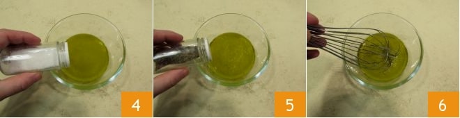 le sel et le poivre moulu (4-5), puis émulsionnez la sauce à l'aide d'un fouet 6.