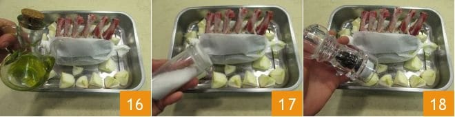 Assaisonnez avec un filet d'huile 16, du sel 17 et du poivre 18.