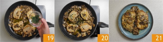 Enfin, ajoutez le persil haché 19 20. Voici l'échine de porc à la poêle prête 21, servez-la avec son fond de cuisson.