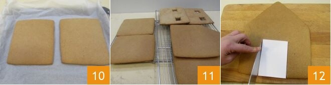 et toit 10. Placez-les sur une grille pour les refroidir complètement 11. Ensuite, découpez la porte avec un couteau à l'aide du gabarit rectangulaire 11x8 cm 12.
