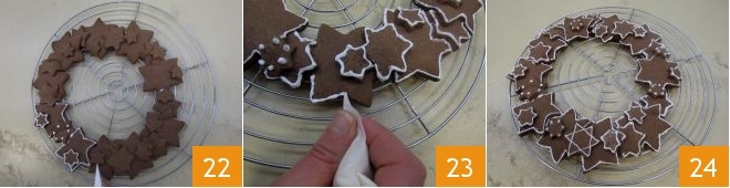 Une fois qu'elles seront complètement froides, décorez les étoiles en dessinant le contour (22-23) ou en réalisant les décorations que vous préférez pour votre centre de table d'étoiles 24 !