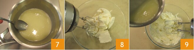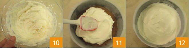Mélangez jusqu'à ce qu'elle soit dissoute, puis laissez tiédir. Dans un bol, versez les deux fromages et mélangez avec un fouet 8. Versez la crème avec la gélatine dans le bol avec les fromages 9. Amalgaméz le tout avec le fouet.