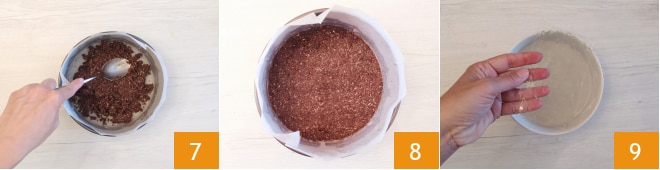Transférez le mélange dans le moule et compactez-le avec le dos d'une cuillère 7. Mettez à raffermir au réfrigérateur pendant au moins 30 minutes 8. Passez à la crème : immergez la gélatine dans de l'eau froide pendant environ dix minutes 9.