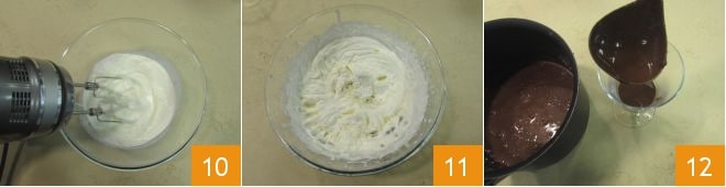 Préparez la crème fouettée avec les fouets électriques (10-11) et mettez-la dans une poche à douille, puis versez le chocolat chaud dans les verres ou les tasses 12,