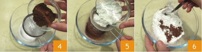 le cacao amer 4 et le sucre glace 5 et mélangez bien 6.