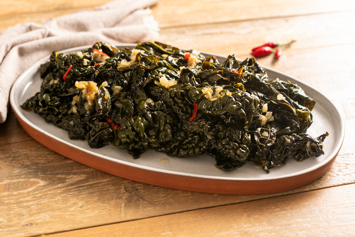 Le chou noir poêlé est un accompagnement simple et léger, idéal pour mettre en valeur la saveur et les propriétés nutritionnelles de ce légume aux feuilles sombres, typique de la saison froide. Nous l'apprécions souvent dans les plats de notre tradition, comme la typique Ribollita, mais cuisiné dans cette version essentielle, il devient un excellent accompagnement tant pour les seconds plats de viande que de poisson, ainsi qu'une base polyvalente pour enrichir bowls et salades.