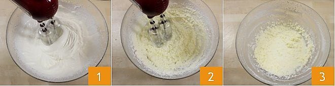 Il existe deux façons de préparer le babeurre : la simple nécessite l'utilisation de crème. Versez la crème fraîche dans un bol propre, et avec un batteur électrique ou un robot équipé de fouets, commencez à monter la crème 1, continuez jusqu'à ce que la crème soit "retombée" en devenant solide 2, quand vous arriverez à ce point, cela signifiera que le lait et la partie grasse se seront séparés 3. Pour obtenir ce résultat, vous devrez monter la crème pendant environ 20 minutes.