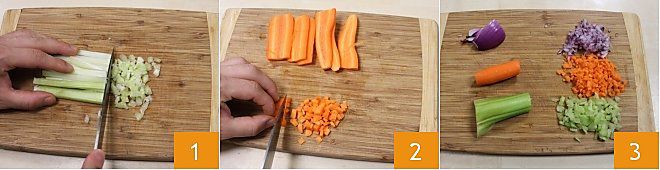 LA COUPE MIREPOIX La coupe mirepoix désigne la coupe en dés de céleri, oignon et carotte, mélange généralement utilisé pour la réalisation des sauces de base. Cette coupe tire son nom de son créateur le Duc de Lévis-Mirepoix. Voyons comment faire. Pour préparer la coupe mirepoix, procédez en coupant en dés le céleri, les carottes et les oignons, obtenant le mélange classique pour la sauce de base (1-2-3).
