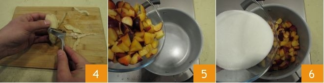 Aidez-vous d'un éplucheur ou d'un petit couteau pour éplucher le gingembre 4. Mettez une grande casserole sur le feu et versez-y les prunes 5. Puis ajoutez le sucre 6.
