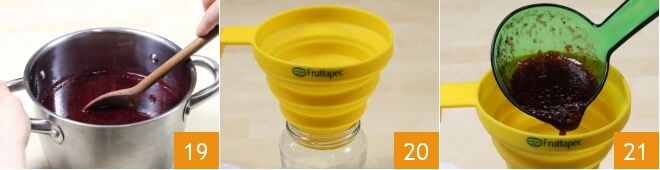 se dissolve complètement 19. Préparez les pots, que vous aurez stérilisés, et procurez-vous un entonnoir pour faciliter la mise en pot de la confiture 20. Versez la confiture encore bouillante, à l'aide d'une louche 21 et