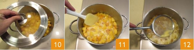 en remuant de temps en temps avec une spatule 11. Si nécessaire, écumez le mélange 12 pour éviter que votre confiture ne devienne opaque.