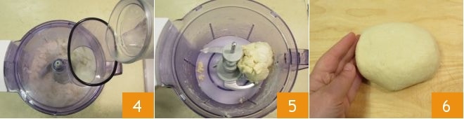 Ensuite, ajoutez l'eau glacée 4 et travaillez la pâte encore 1 à 2 minutes jusqu'à ce qu'elle soit bien compacte 5. Transférez-la sur un plan de travail, travaillez-la avec vos mains juste un instant pour lui donner la forme d'un petit pain 6. Enveloppez le petit pain dans du film plastique et laissez-le reposer au réfrigérateur pendant 40 minutes.
