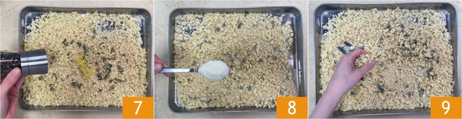 Assaisonnez aussi de poivre 7 et de fromage râpé 8, puis mélangez bien le tout 9.