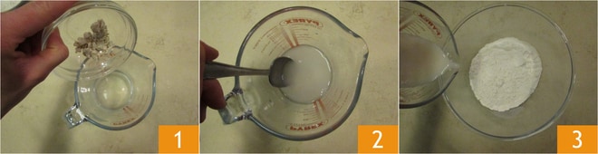 Pour préparer la couronne salée avec fromage et friarielli, dissolvez la levure de bière 1 dans l'eau 2 et ajoutez-la à la farine manitoba 3.