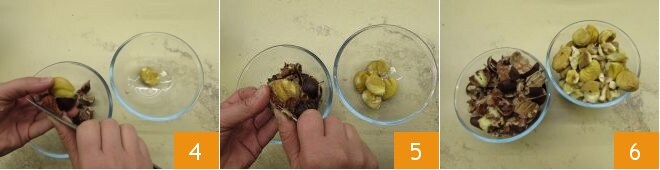 Profitez du fait qu'elles soient encore très chaudes pour les éplucher 4 et les peler à l'aide d'un couteau d'office 5 : ce sera plus facile de les nettoyer 6.